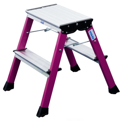 Стремянка алюминиевая двухсторонняя Krause Rolly 2х2 ступени розовая (арт.130136)