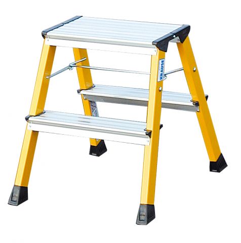Стремянка алюминиевая двухсторонняя Krause Rolly 2х2 ступени желтая (арт. 130044)
