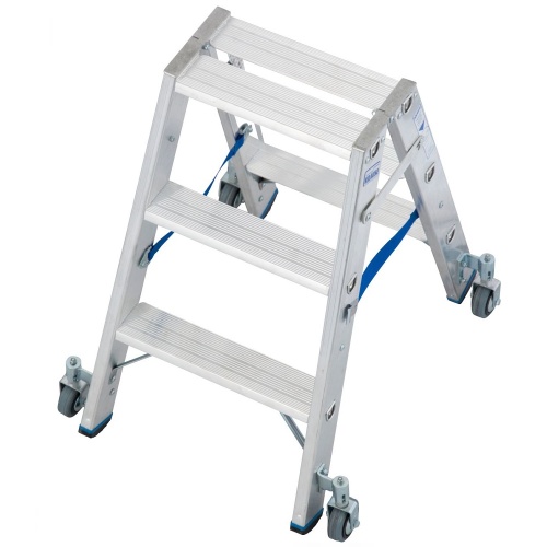 Стремянка алюминиевая двухсторонняя Krause Stabilo с роликами 2х3 ступени (арт. 124814)
