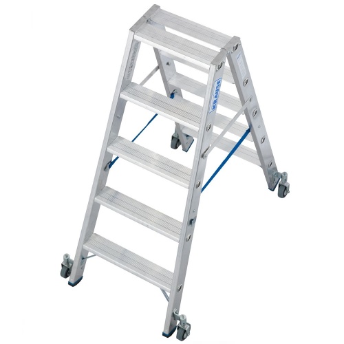 Стремянка алюминиевая двухсторонняя Krause Stabilo с роликами 2х5 ступеней (арт. 124838)