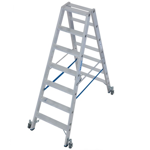 Стремянка алюминиевая двухсторонняя Krause Stabilo с роликами 2х8 ступеней (арт. 124869)