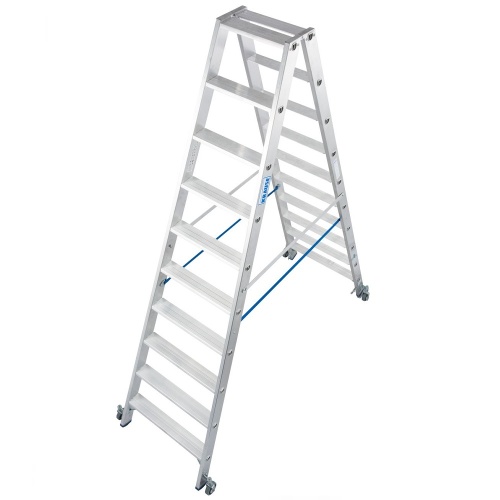 Стремянка алюминиевая двухсторонняя Krause Stabilo с роликами 2х10 ступеней (арт. 124876)