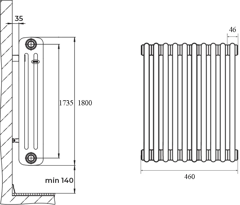 Радиатор стальной Rifar Tubog Ventil 1800 10 секций, 2-трубчатый, титан матовый