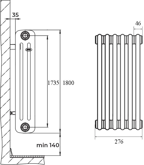 Радиатор стальной Rifar Tubog Ventil 1800 4 секции, 2-трубчатый, титан матовый