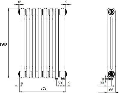 Радиатор стальной Rifar Tubog Ventil 1800 8 секций, 2-трубчатый, титан матовый