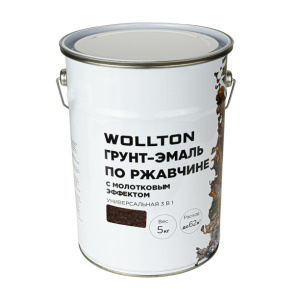 Грунт-эмаль по ржавчине Wollton 3в1 молотковая шоколадная 5 кг