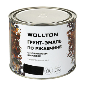 Грунт-эмаль по ржавчине Wollton 3в1 молотковая RAL 9005 черная 1,9 кг