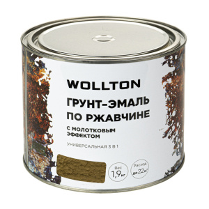 Грунт-эмаль по ржавчине Wollton 3в1 молотковая охра 0,9 кг