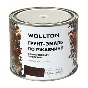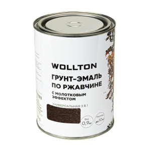Грунт-эмаль по ржавчине Wollton 3в1 молотковая шоколадная 0,9 кг