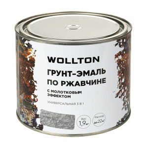Грунт-эмаль по ржавчине Wollton 3в1 молотковая светло-серая 1,9 кг