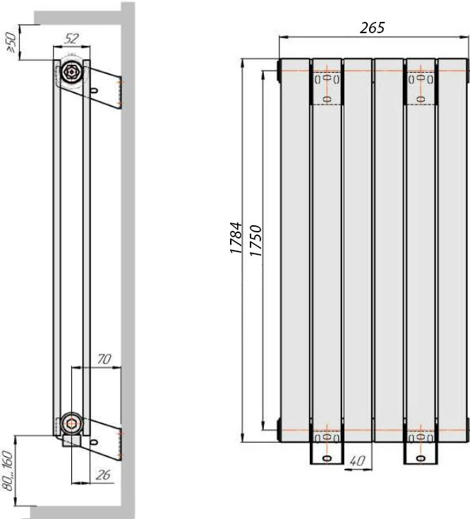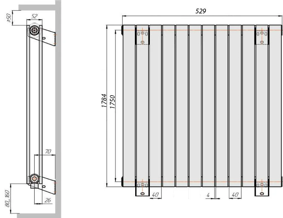 Радиатор стальной KZTO Соло В2-1750 8 секций, боковое подключение, черный матовый