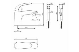 Смеситель для раковины Damixa Origin Bit с гигиеническим душем хром