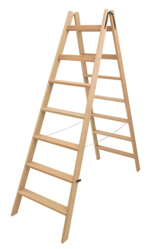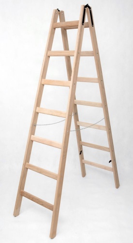 Стремянка двухсторонняя деревянная со ступенями и перекладинами Hoz-Block Альпинист 2х7 ступеней (арт. СДДА-7)