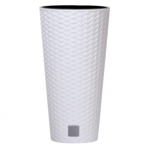 Кашпо пластиковое Rato Tubus ротанг белое d30 см h57,2 см 27 л со вставкой 15 л