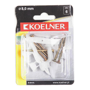 Дюбель для гипсокартона + шуруп D8х18 мм / D3,5х45 мм 6 шт 08-GL KOELNER