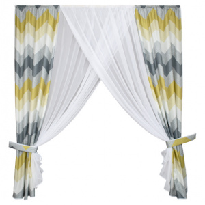 Штора для кухни Зигзаг 240х180 см с подхватами желтая