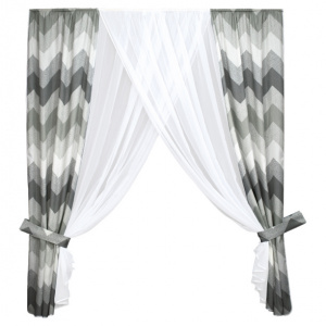 Штора для кухни Зигзаг 240х180 см с подхватами серая