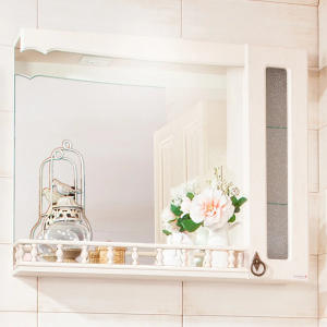 Зеркало Бриклаер Кристалл 40 белое, с подсветкой и полкой