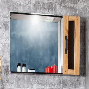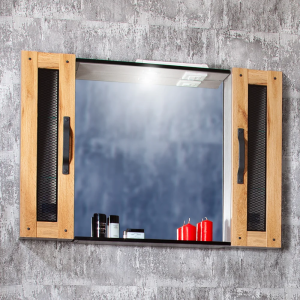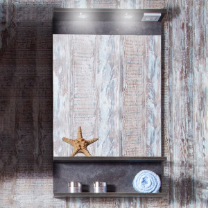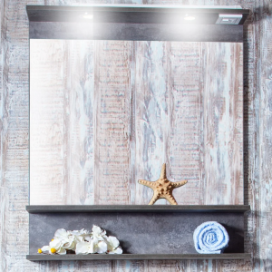 Зеркало Бриклаер Кристалл 40 ясень анкор, темный, с подсветкой и полкой