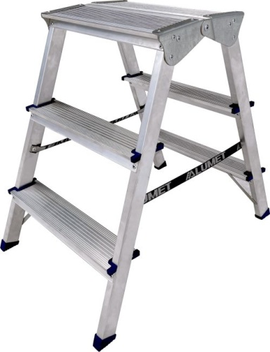 Стремянка алюминиевая двухсторонняя c широкой верхней ступенью Алюмет 3 ступени арт. ADK 6203