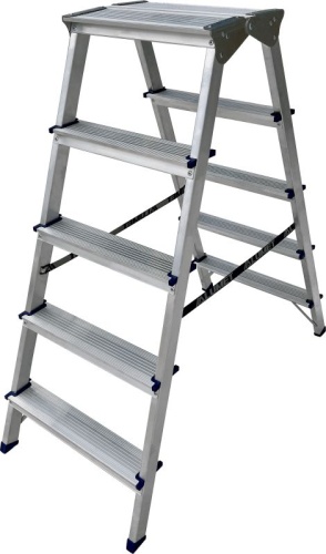 Стремянка алюминиевая двухсторонняя c широкой верхней ступенью Алюмет 5 ступеней арт. ADK 6205