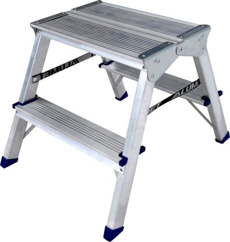Стремянка алюминиевая двухсторонняя c широкой верхней ступенью Алюмет 2 ступени арт. ADK 6202