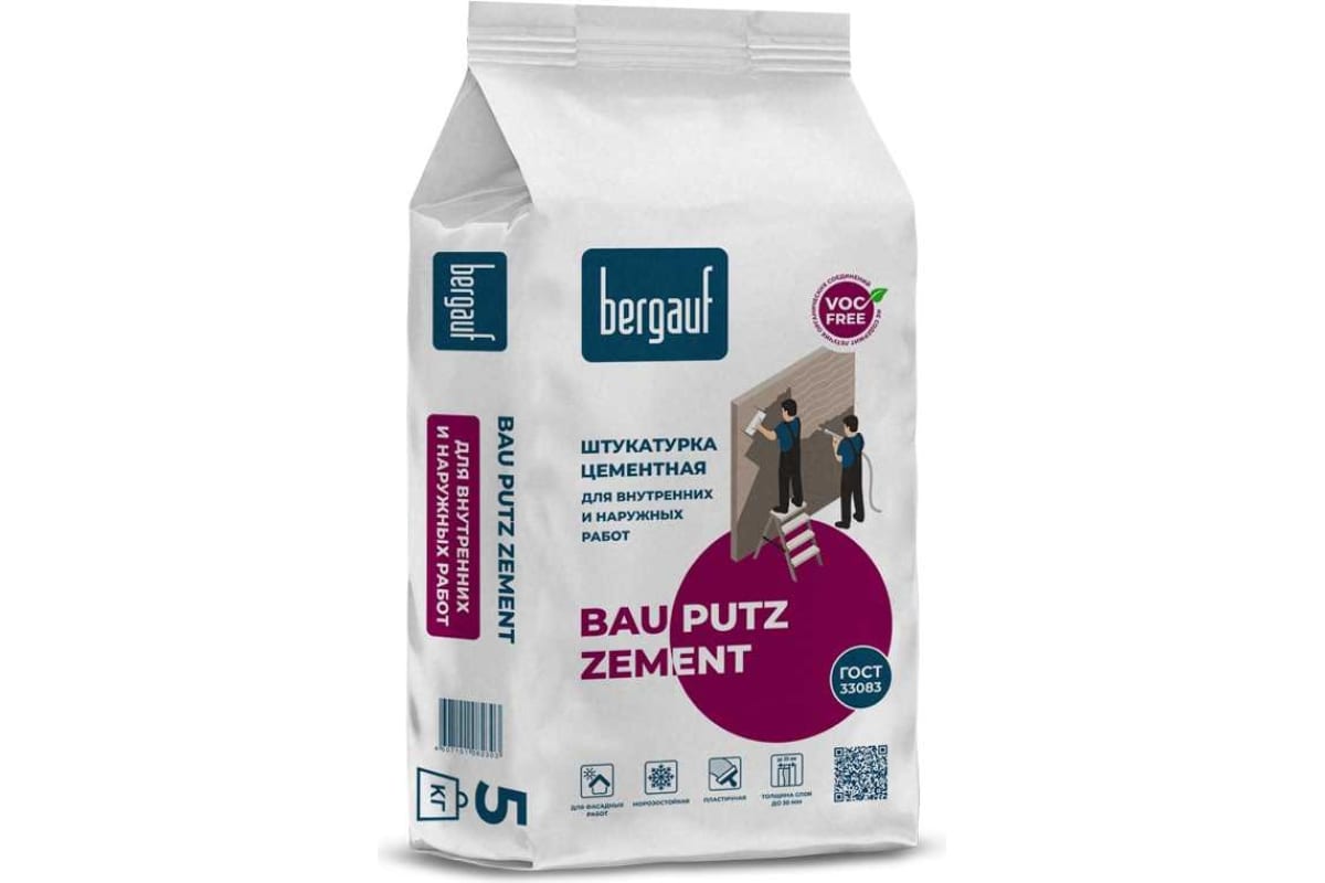 Смесь сухая штукатурная с повышенной водо-и морозостойкостью BERGAUF Bau Putz Zement 5 кг