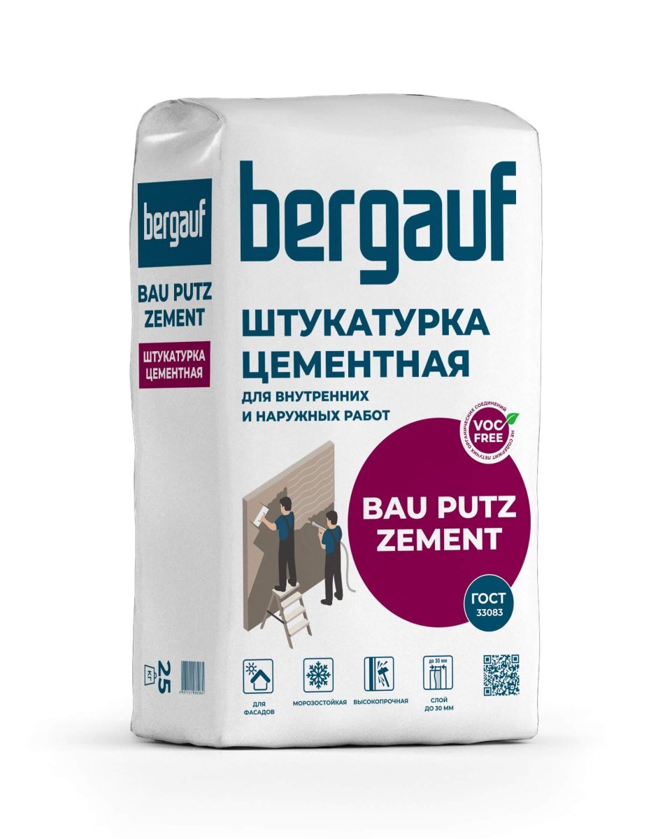 Штукатурка цементная Bergauf Bau Putz Zement с повышененной водо-и морозостойкостью 25 кг