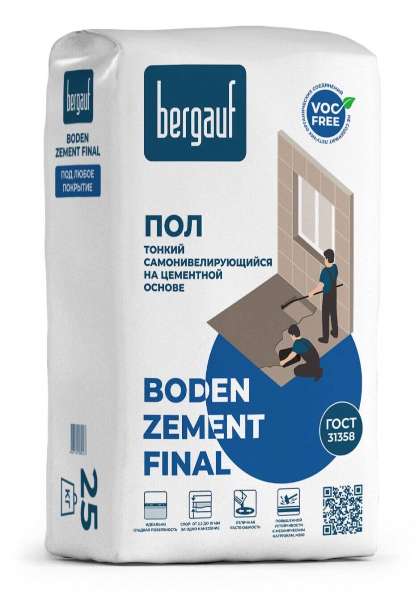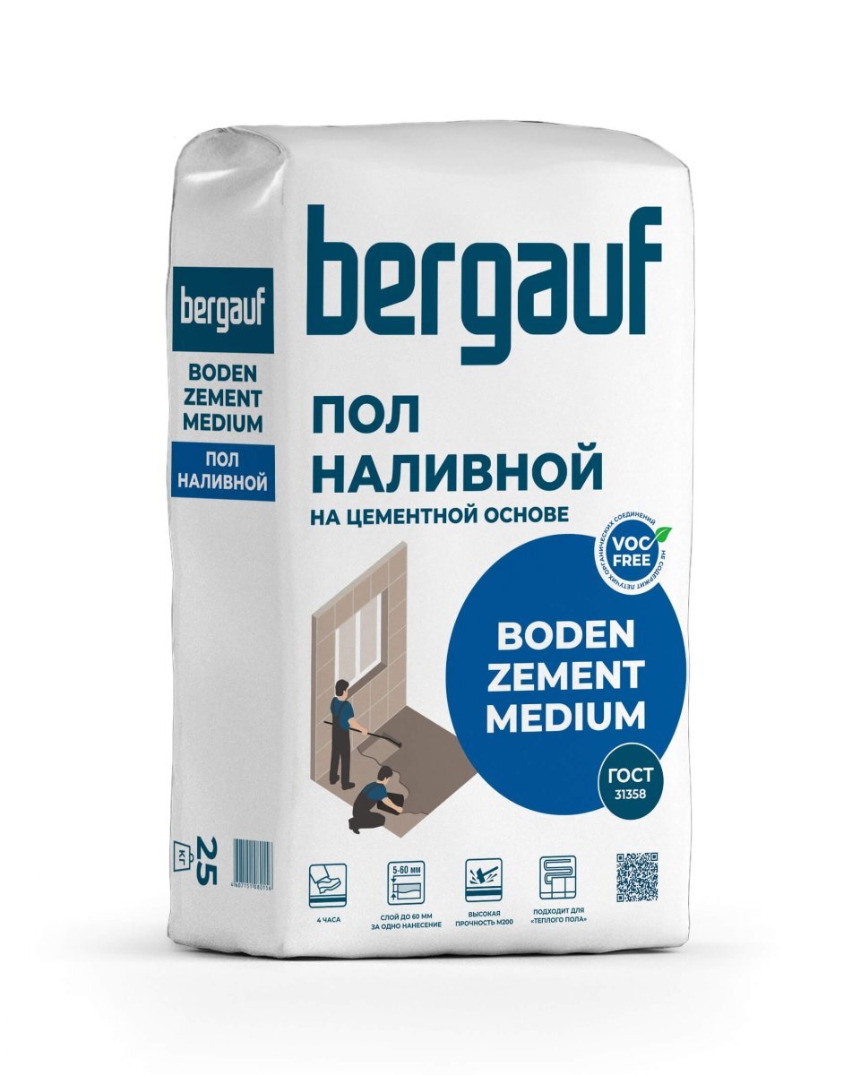 Смесь сухая напольная тонкая самонивелирующася под любое покрытие BERGAUF Boden Zement Final 25 кг