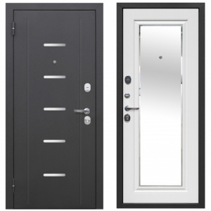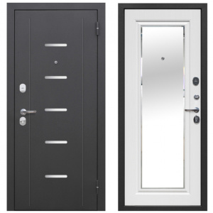 Дверь входная металлическая Сиэтл с зеркалом серебро/белый ясень 2050х860х75 мм правая