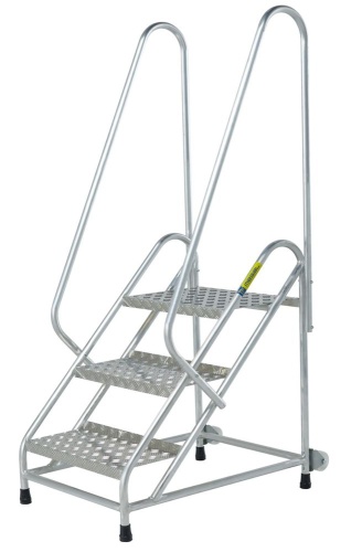 МОНТАЖНАЯ ПОДСТАВКА MEGAL (ТИП 2) 3 СТУПЕНИ С ОДНИМ ПОРУЧНЕМ С КОЛЕСАМИ
