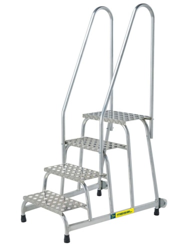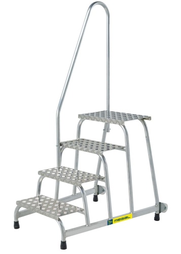МОНТАЖНАЯ ПОДСТАВКА MEGAL (ТИП 1) 4 СТУПЕНИ С ОДНИМ ПОРУЧНЕМ С КОЛЕСАМИ