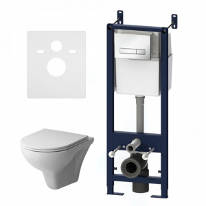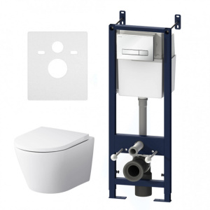 Инсталляция AM.PM Start S с безободковым унитазом, сиденьем, белой кнопкой