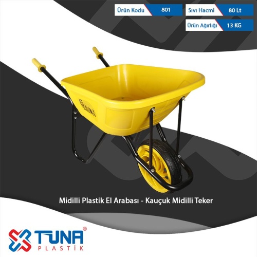 Тачка одноколесная 80л TUNA c желтым корытом