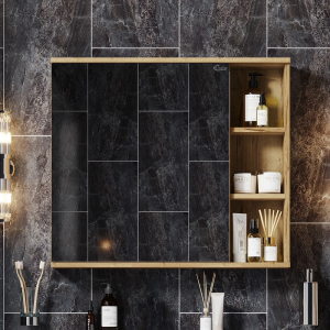 Зеркало-шкаф STWORKI Стокгольм 80 , навесной, белый, под дерево, квадратный
