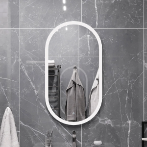 Зеркало STWORKI Скаген 120 с подсветкой, белое, инфракрасное управление, овальное, большое