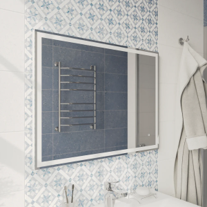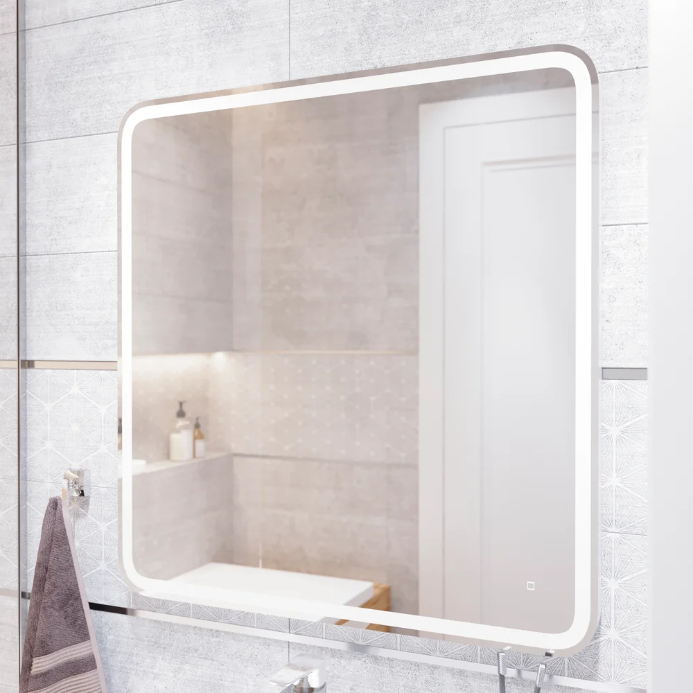 Зеркало STWORKI Монтре 80 с подсветкой, сенсор на зеркале, квадратное, белое, настенное