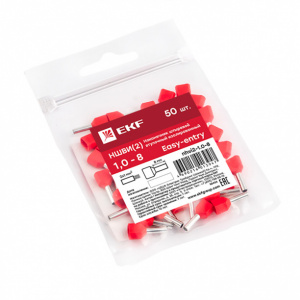 Наконечник штыревой втулочный изолированный EKF 1 мм2 НШвИ(2) двойной 50 шт