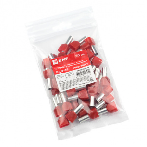 Наконечник штыревой втулочный изолированный EKF НШвИ(2)10,0-14 двойной 50 шт