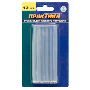 Клеевые стержни ПРАКТИКА 7х100 мм 12 шт белые прозрачные