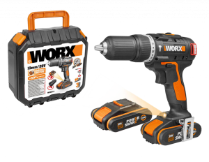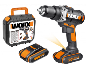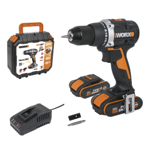 Дрель-шуруповерт ударная WORX WX367 аккумуляторная 20V 40Нм, бесщеточная, с двумя АКБ на 1,5Ач и ЗУ, в кейсе