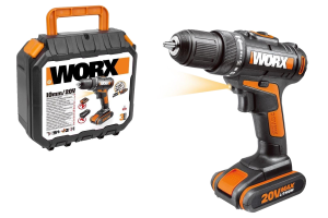 Дрель-шуруповерт WORX WX101.1 аккумуляторная 20V 30Нм, с двумя АКБ на 1.5Ач и ЗУ, в кейсе