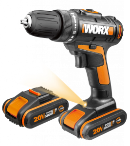 Дрель-шуруповерт WORX WX183.1 аккумуляторная 20V 50Нм, с двумя АКБ на 2Ач и ЗУ, в кейсе