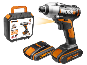 Винтоверт ударный WORX WX261 аккумуляторный 20V 230Нм, бесщеточный, с двумя АКБ на 2Ач и ЗУ