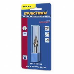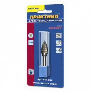 Фреза по металлу твердосплавная параболическая заостренная 8х20 мм ПРАКТИКА