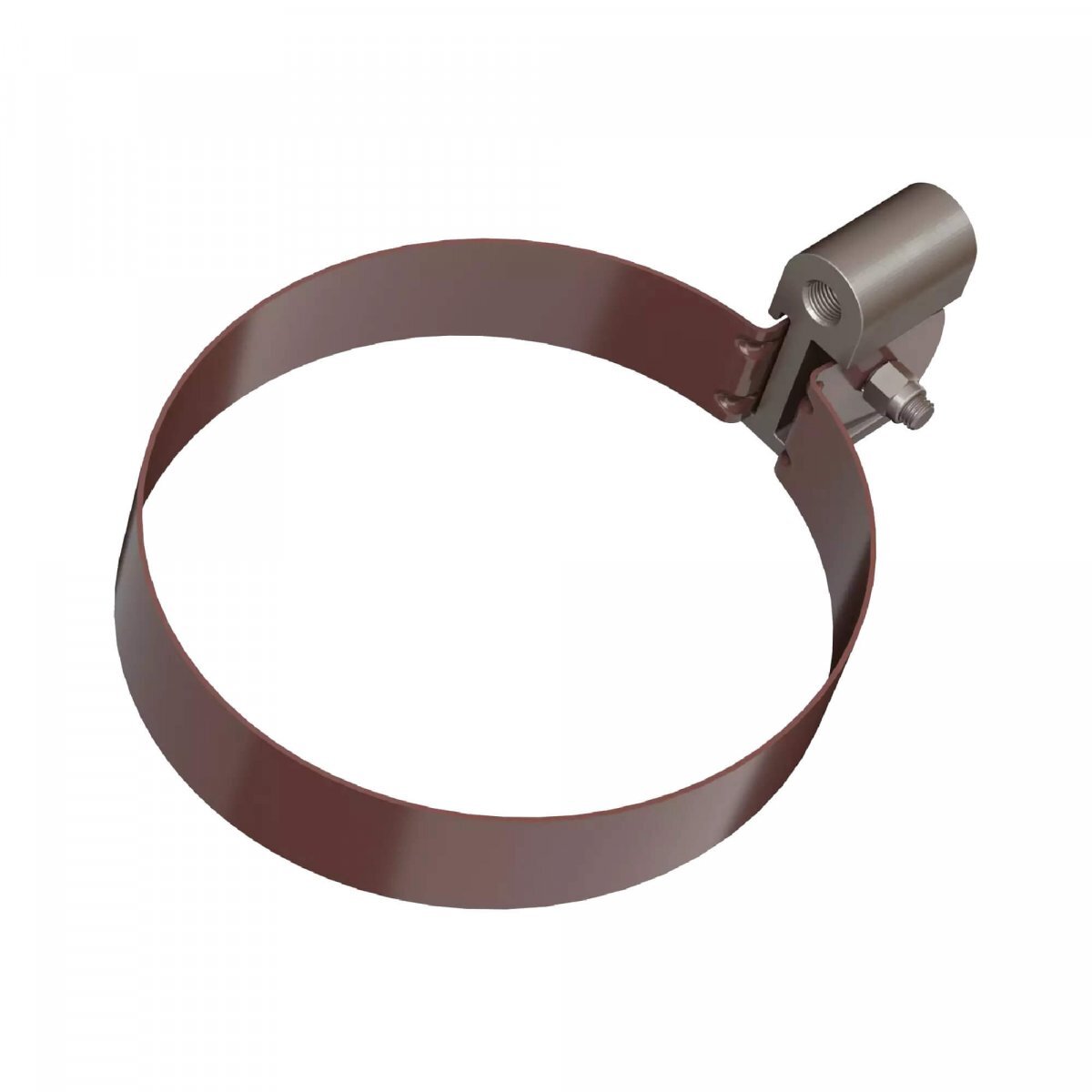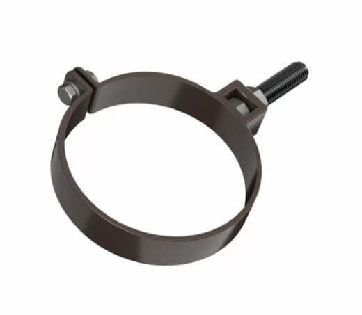 Хомут трубы металлический для ПВХ ТЕХНОНИКОЛЬ 125/82, с дюбелем L=140 мм, темно-коричневый
