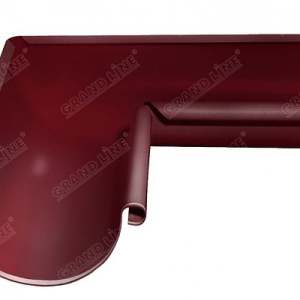 Угол желоба внешний, 90° 125x90 мм. Grand Line, цвет Ral 3005 красное вино