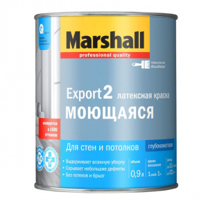 Краска моющаяся латексная глубокоматовая Marshall Export-2 белая 0,9 л