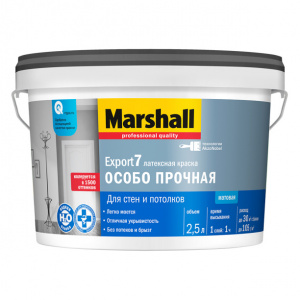 Краска моющаяся латексная глубокоматовая Marshall Export-2 белая 2,5 л