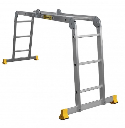 Алюминиевая профессиональная четырехсекционная шарнирная лестница трансформер T433 АЛЮМЕТ